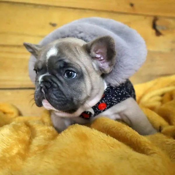 A cozy, round-faced male puppy with a warm, golden coat and a love for napping in soft blankets. His happy barks are as comforting as a fresh-baked muffin.
